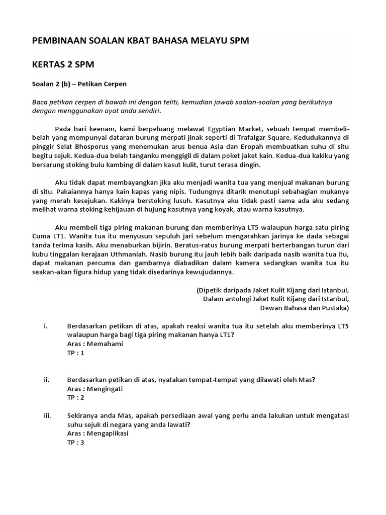 Contoh Soalan Soalan Kbat Bahasa Melayu Spm